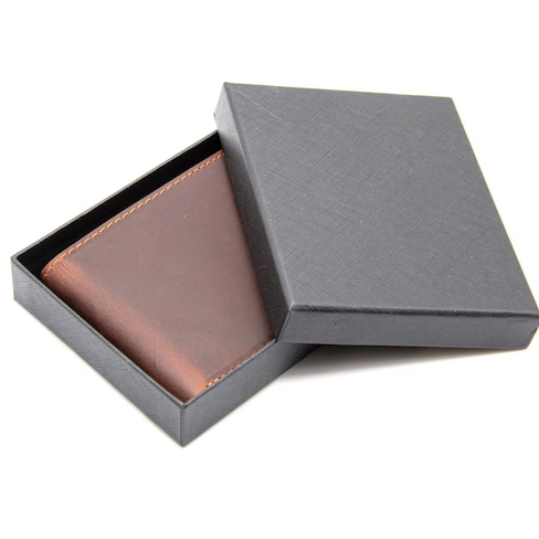 Material: Wallet boxes are typically made of durable materials such as cardboard, plastic, leather, or wood. The choice of material depends on factors such as durability, aesthetics, and budget considerations.